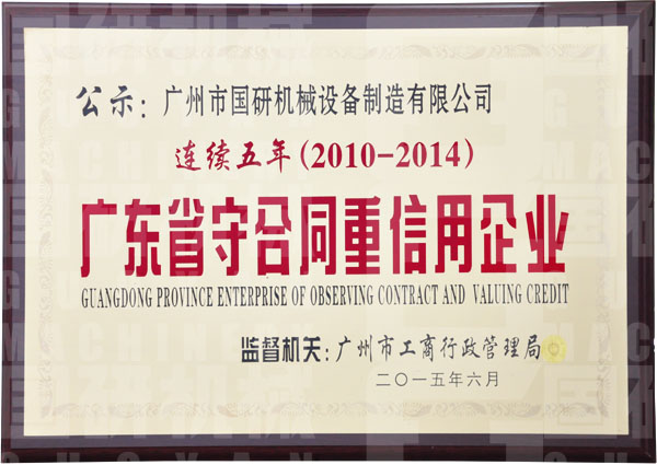 “连续五年(2010-2014)广东省守合同重信用企业”的牌匾在广州市博鱼集团官网(中国)官方网站设备制造有限公司的文化展示墙上格外引人注目,这是对公司多年坚持诚信经营的充分肯定,也是公司企业文化“诚信、创新、分享、精进”的客观体现。