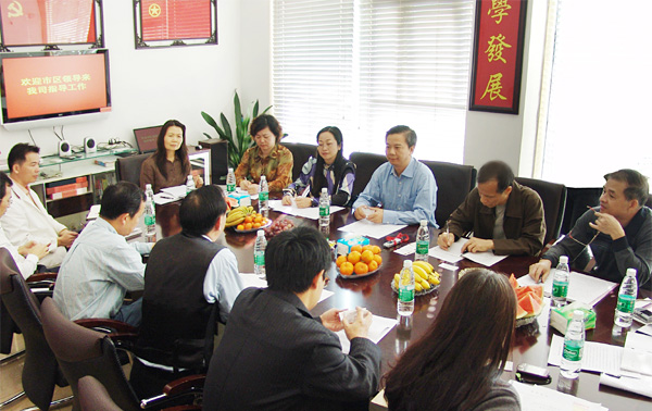 广州市非公经济组织创先争优活动指导小组在博鱼集团官网(中国)官方网站公司调研(中为广州市工商局副局长周邦华)